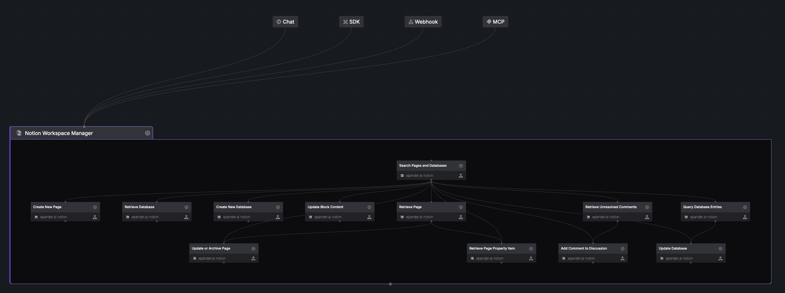 Exposing entire agents as MCP servers is a powerful pattern. In xpander, you can indeed treat a whole agent (with its multiple steps and logic) as a single MCP endpoint. This means the AI client doesn’t need to micromanage each sub-tool; it delegates a chunk of work to xpander’s orchestrator. We carefully document to the user (and by extension to the LLM via descriptions) what that one “mega-tool” will do. For instance: "