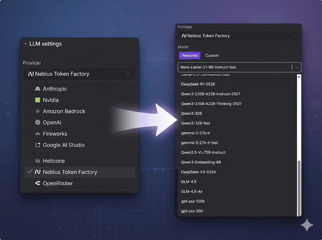 Nebius Token Factory: Aggregated access to open-weight ecosystems including Meta Llama, NVIDIA Nemotron, Qwen, DeepSeek, and GPT OSS models.